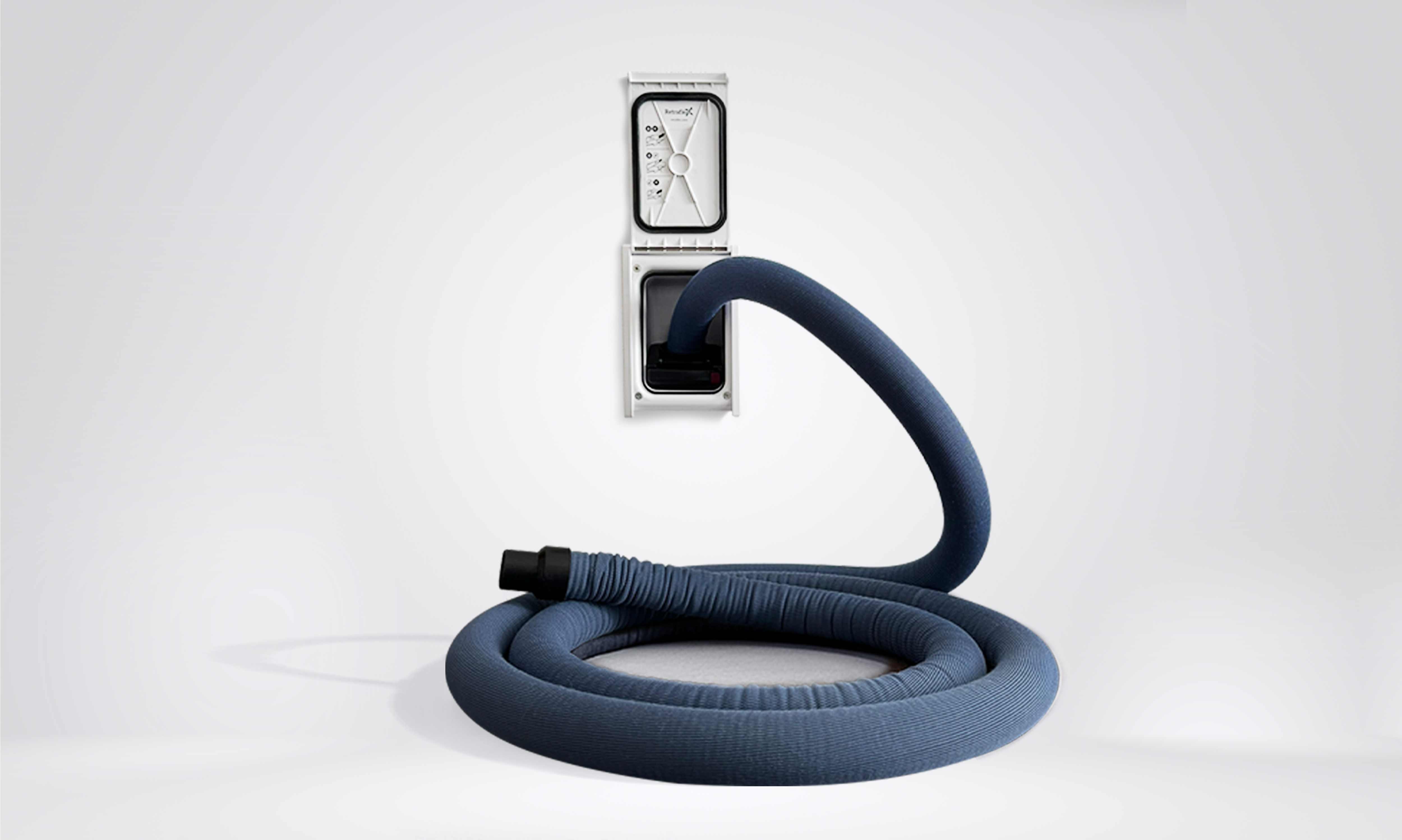 Zentralstaubsaugers wird der Schlauch in die Saugdose